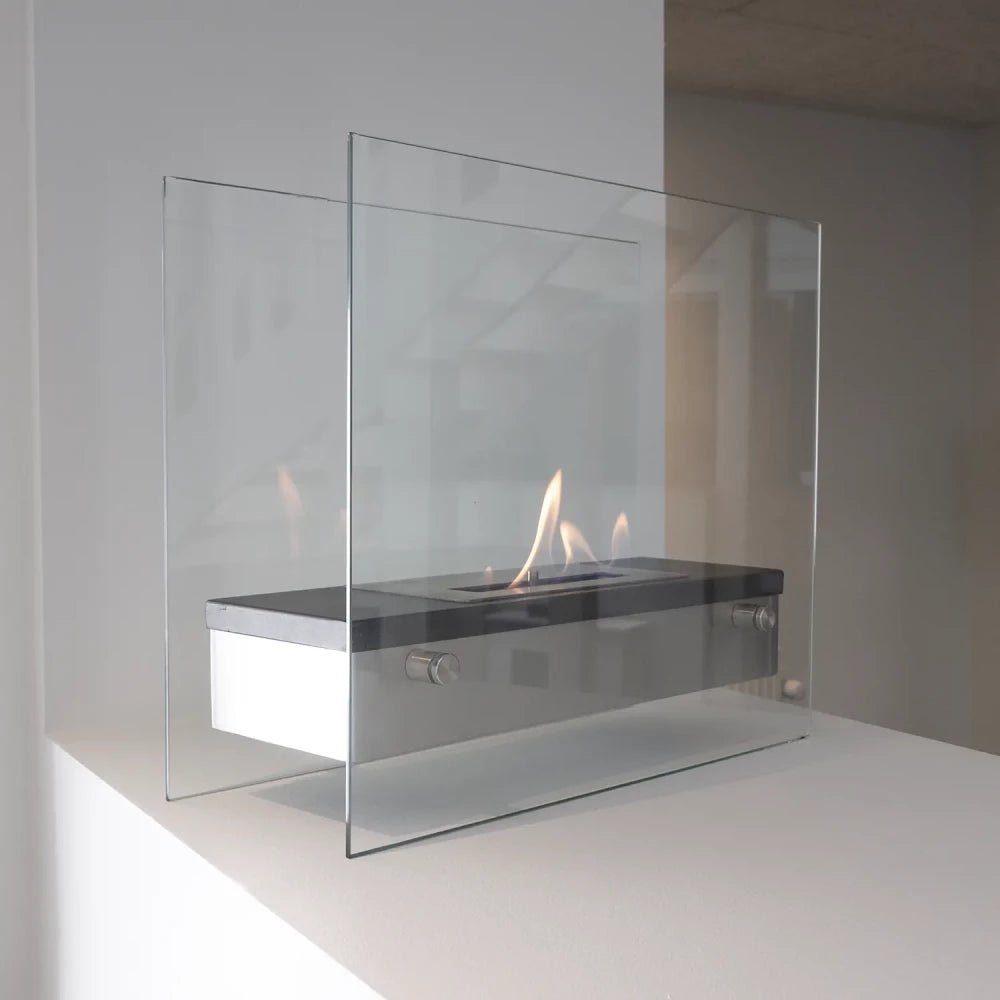 Kensington – Cheminée Bioéthanol à Poser en Verre et Acier