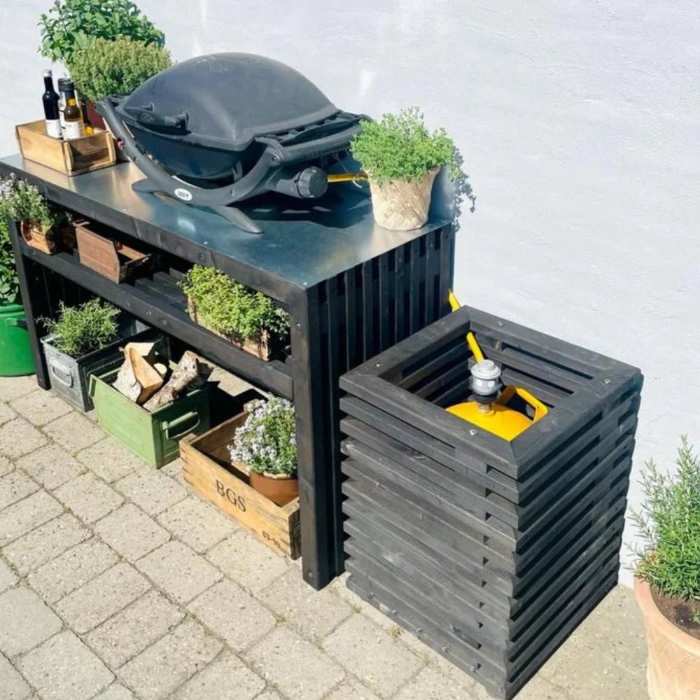 Cache-bouteille de gaz en lattes de bois noires
