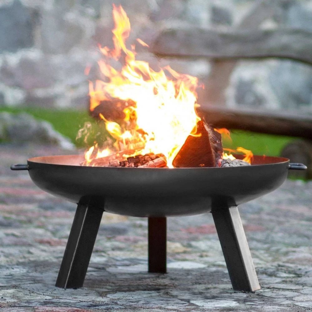 Ce brasero beau et élégant est fait à la main, monté sur 3 pieds et fabriqué en acier brut de haute qualité. Le brasero est fabriqué par Cook King et conçu pour être utilisé comme gril, feu de camp et brasero. Le bord offre à la fois de la sécurité des cendres et des braises, mais donne également un belle vue sur les flammes naturelles.