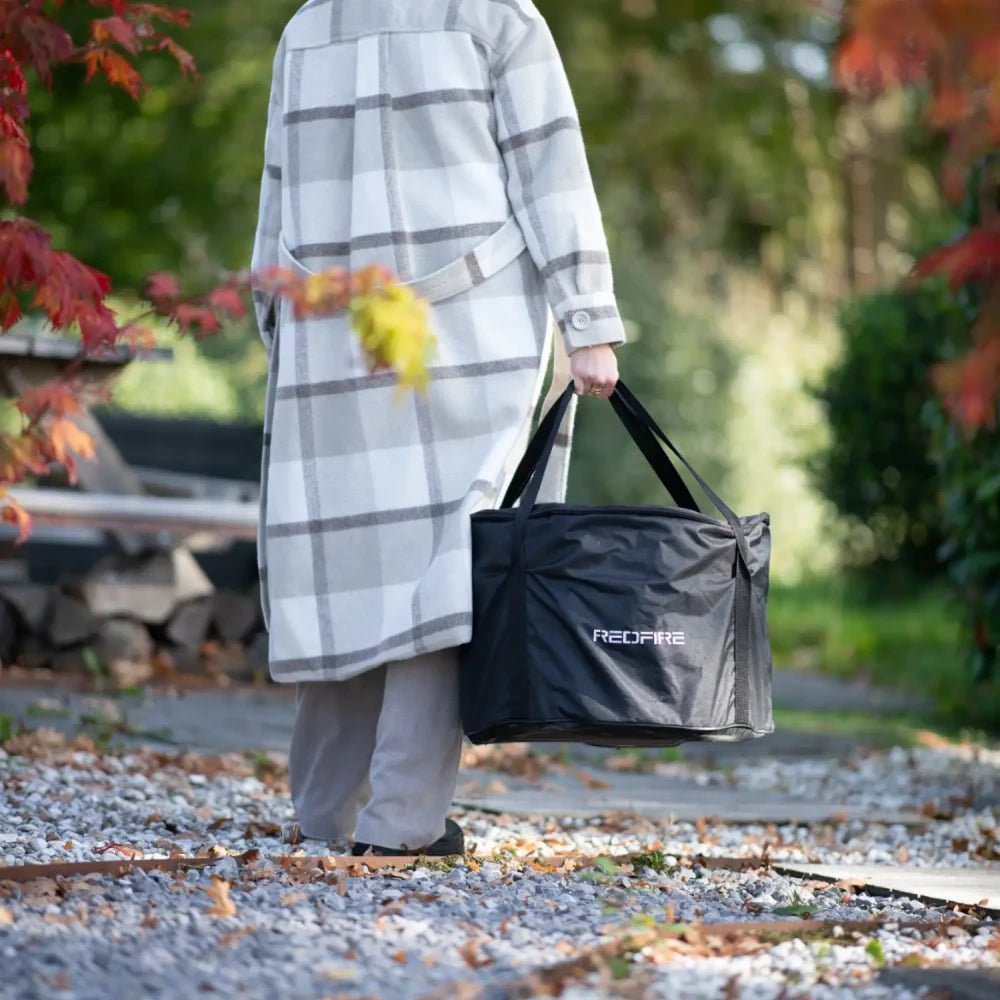 Elle est livrée avec un bac à cendres amovible et un sac de transport pour un rangement ou un transport facile. Malgré sa taille, elle est simple à monter et à manipuler.