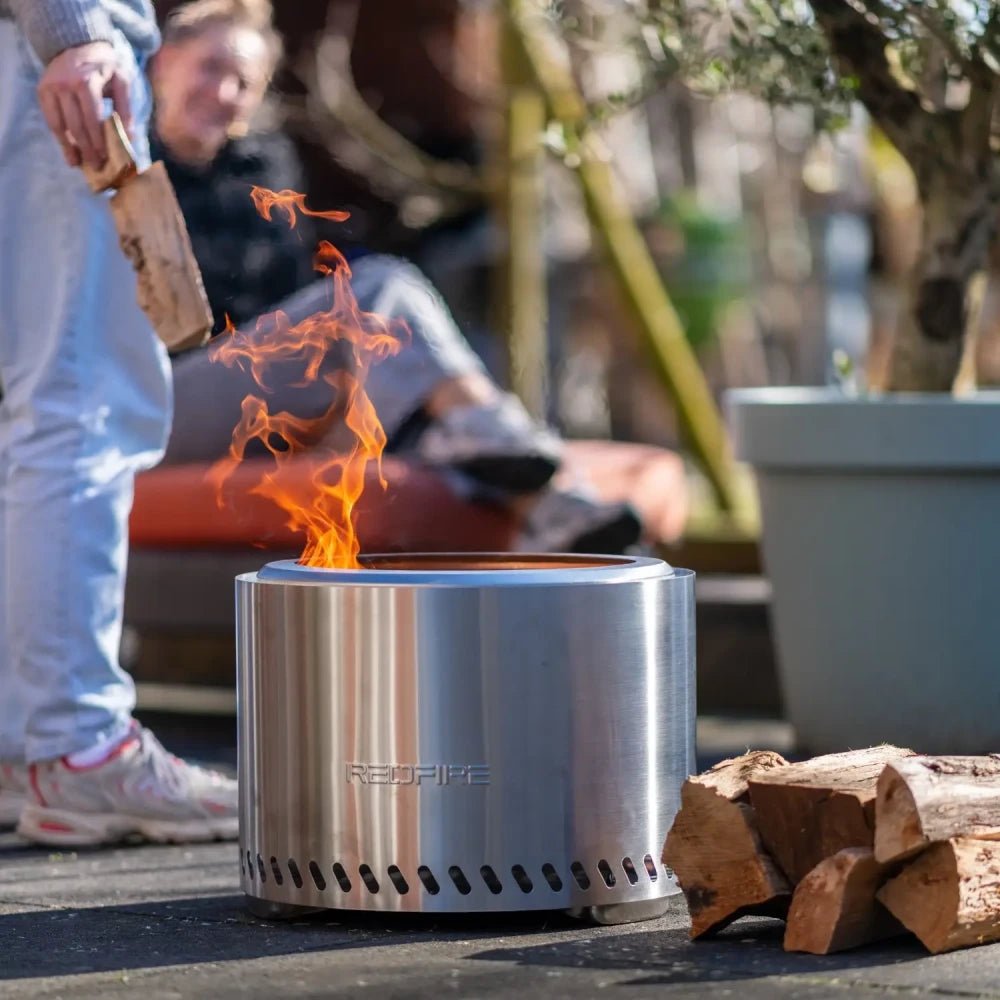 Vous pouvez utiliser des pellets de bois ou de petits morceaux de bois sec. Allumez facilement votre feu avec un cube allume-feu ou un peu de liquide d’allumage, et profitez d’une flamme puissante et presque sans fumée.