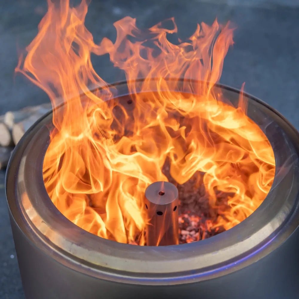 Sa structure cylindrique, sa ventilation par la base et son design à double paroi assurent un apport d’air optimal et une répartition homogène de la flamme sur trois côtés. Résultat : un feu stable et spectaculaire.