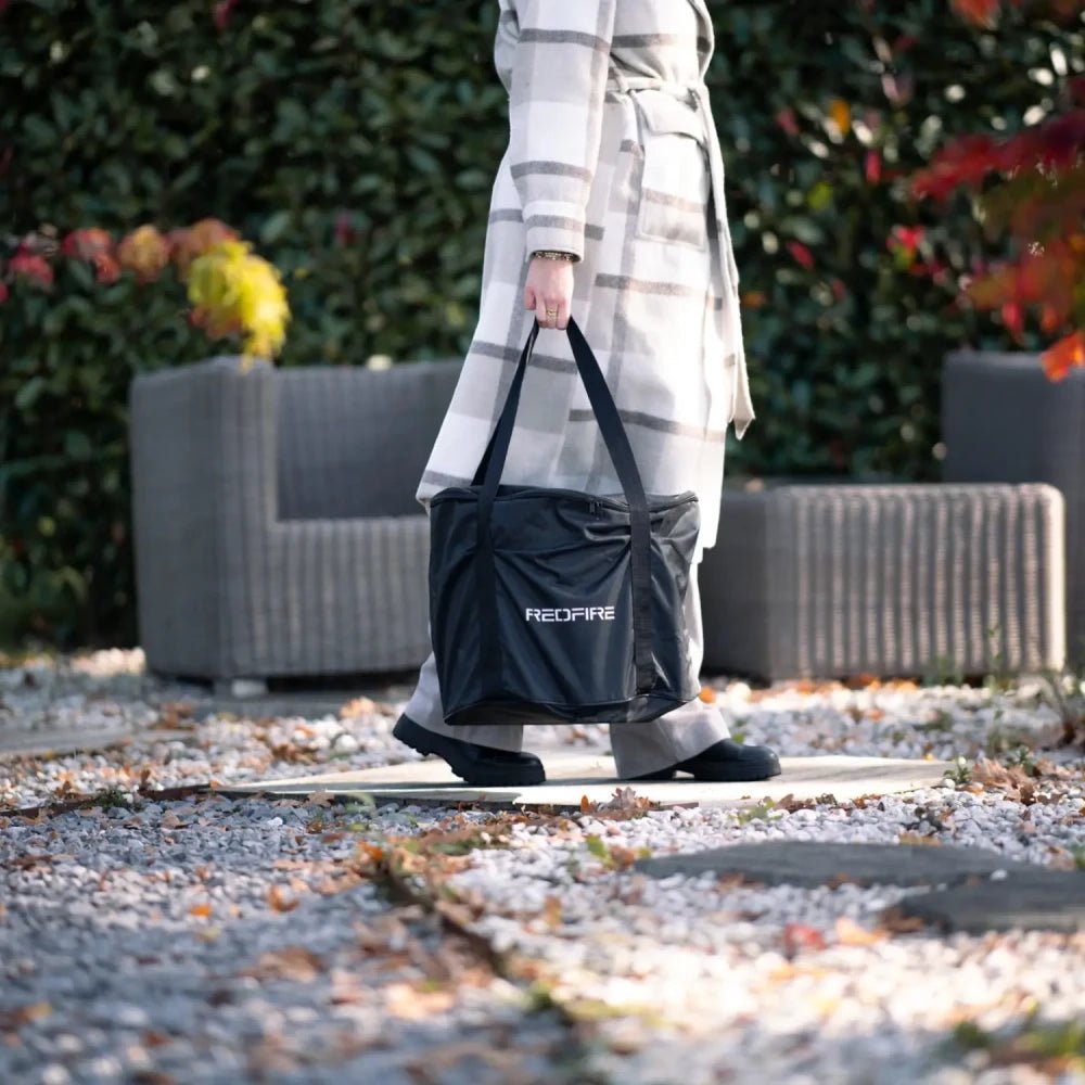 La Volcano Large est livrée avec un bac à cendres amovible et un sac de transport, pour un déplacement ou un rangement simplifié lorsque vous ne l’utilisez pas.