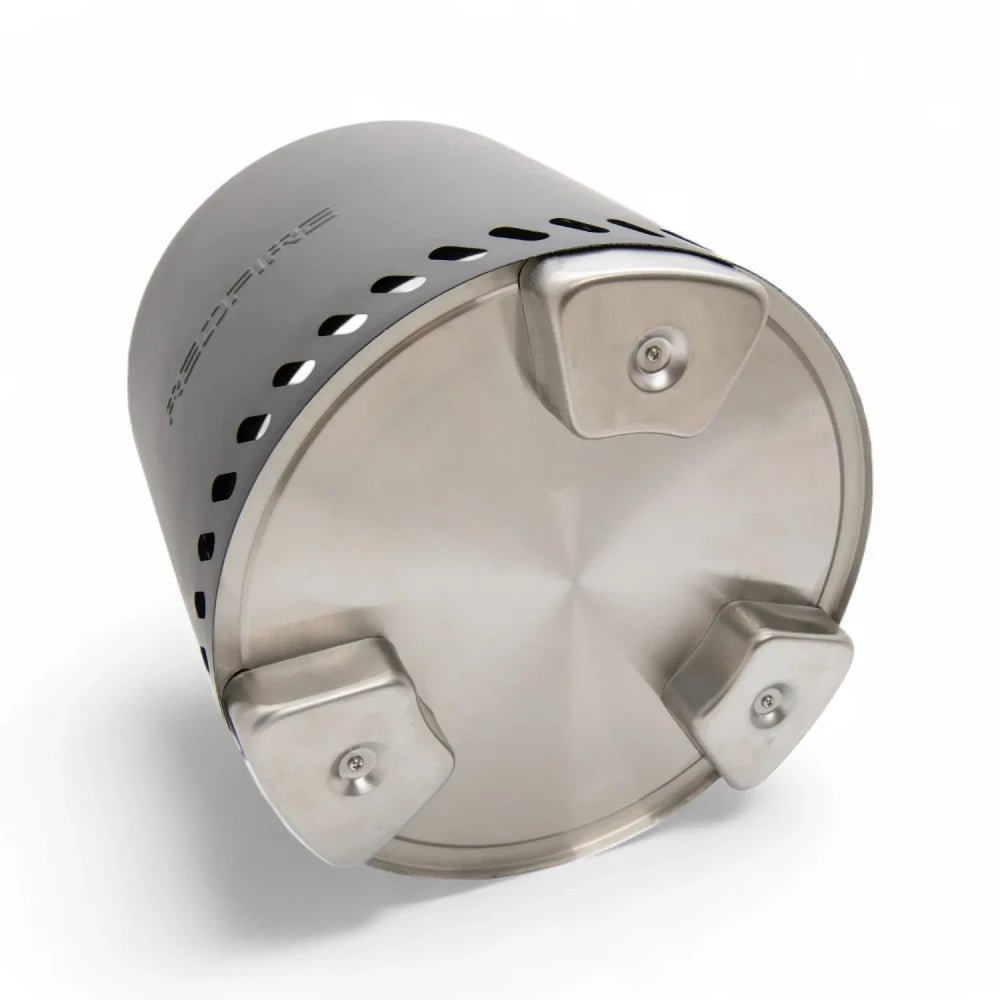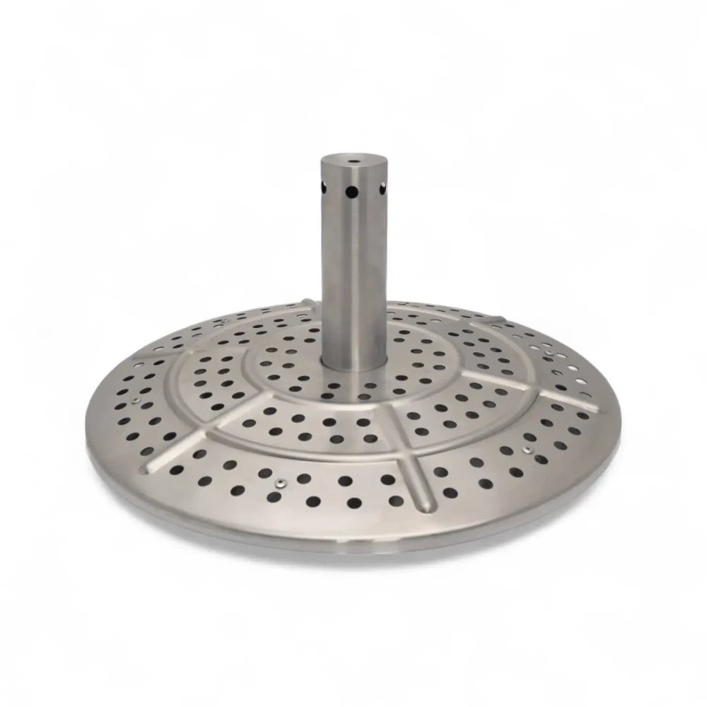 Sa forme cylindrique, sa ventilation par la base et sa structure à double paroi garantissent une combustion efficace avec des flammes issues de trois points, pour un feu large, stable et uniforme.
