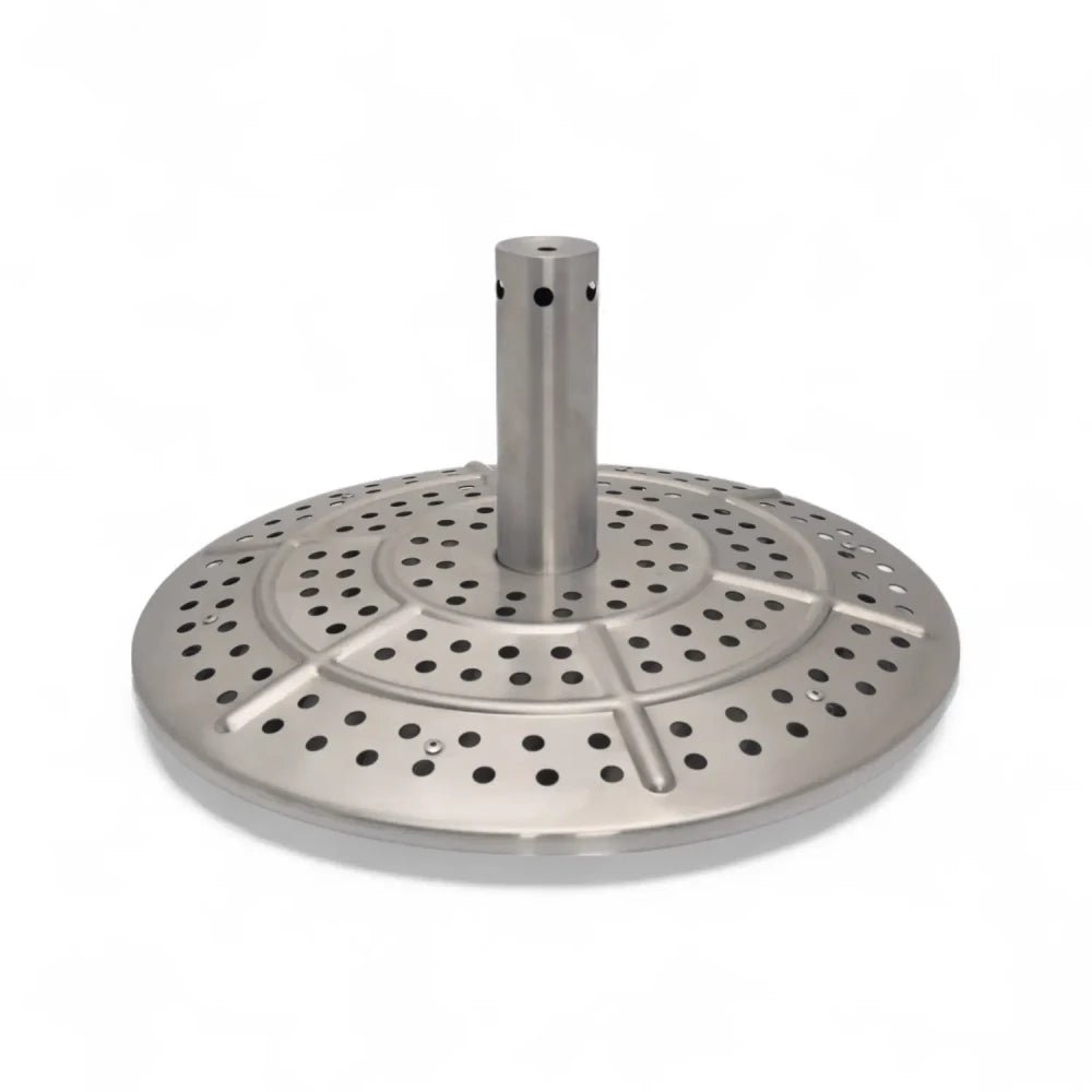 Sa forme cylindrique, ses ouvertures de ventilation à la base et sa construction à double paroi assurent une circulation d’air optimale et des flammes provenant de trois points, pour un feu stable, homogène et spectaculaire.