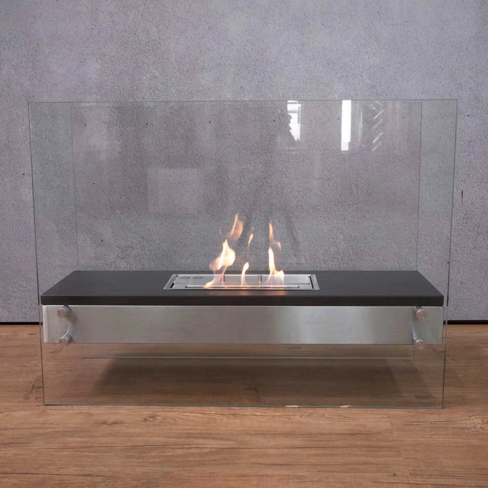 Un beau et esthétique brûleur au bioéthanol avec de grandes plaques de verre montées de chaque côté. Son design élégant en fait un ajustement parfait dans de nombreuses maisons modernes et constitue une manière élégante de créer une ambiance dans votre chambre. Les flammes sont réglables et ont une durée de combustion potentielle de 3 à 4 heures en fonction de la taille des flammes. Un indispensable dans de nombreuses maisons modernes.