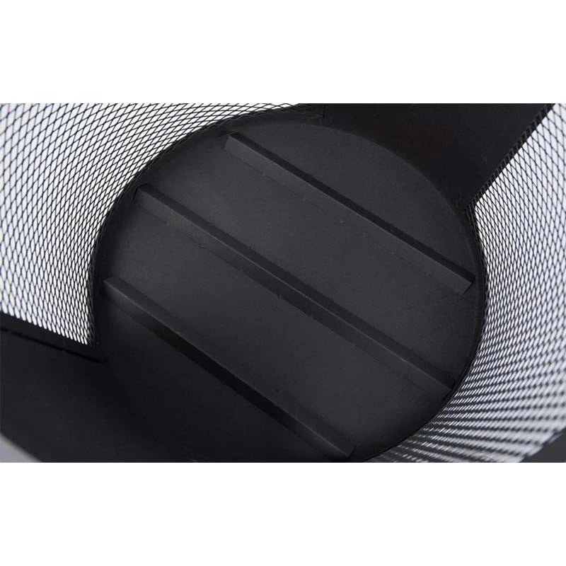 Une combinaison d’un foyer et d’un stockage de bois. Autour des flammes se trouve une grille qui permet de profiter des flammes de tous les côtés tout en assurant une bonne protection.