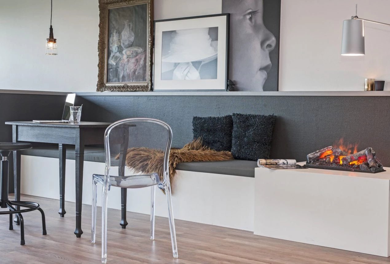 Avec Cassette 400/600, vous disposez d’une cheminée hybride moderne, qui crée des effets de flammes à l’aide de vapeur d’eau et de lumières LED. La Cassette 400/600 est conçue pour les projets DIY, où vous souhaitez construire votre propre cheminée ou transformer une cheminée ou un poêle existant en une cheminée Opti-Myst.