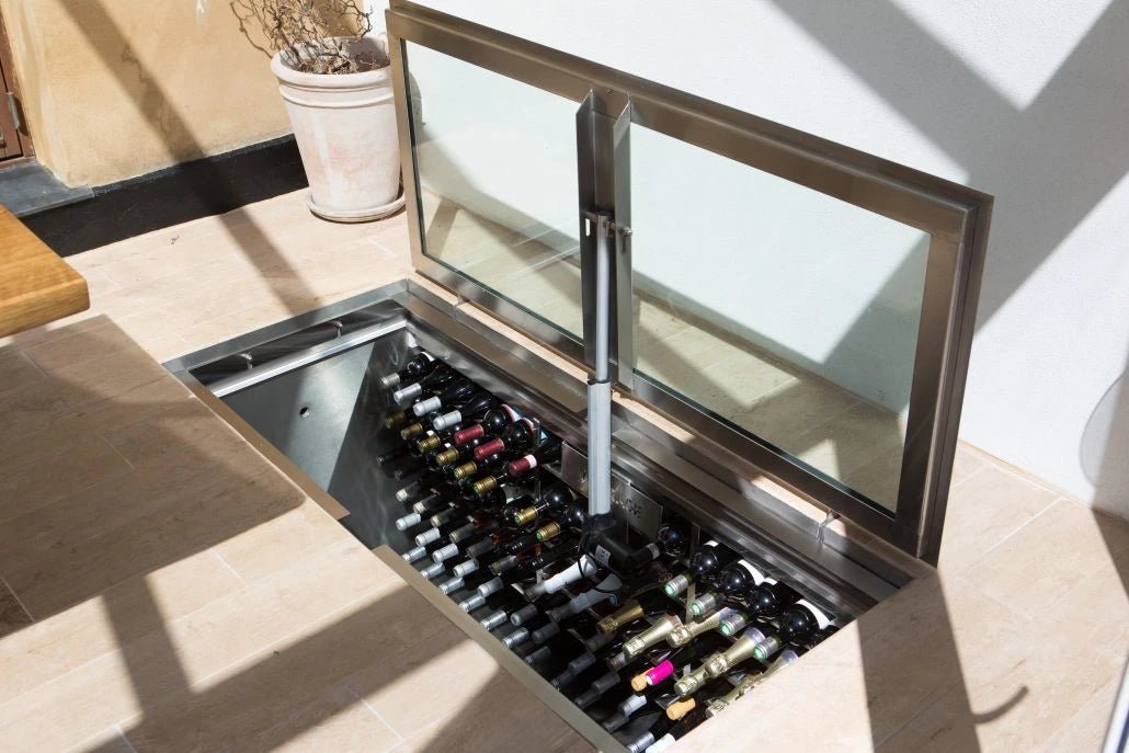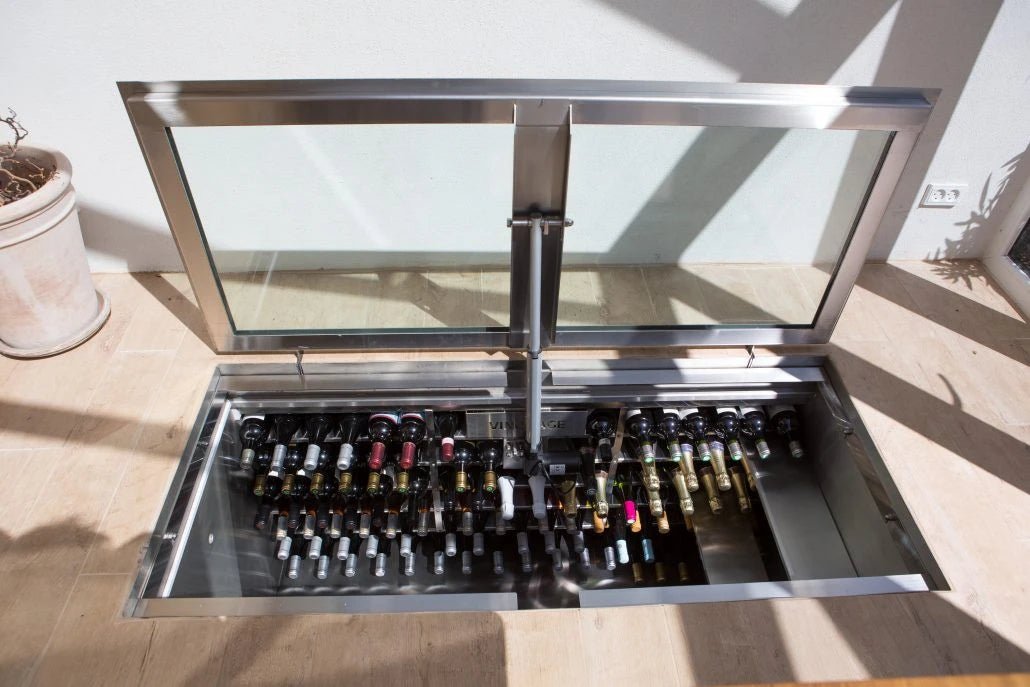 petite version de la série des caves à vin à encastrable. Elle mesure 1,5 mètre x 1 mètre et a une profondeur de 82,5 cm.