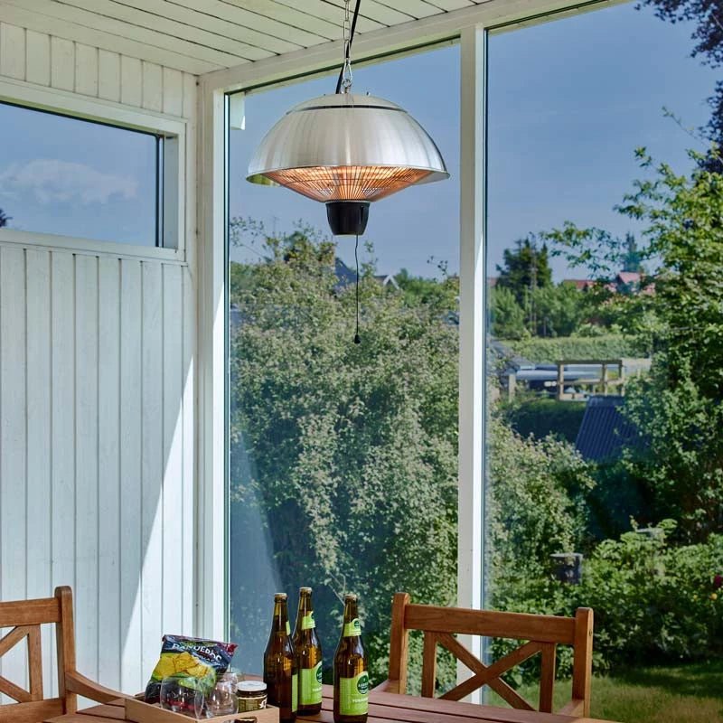 Chauffe-terrasse moderne et élégant, conçu pour être monté au plafond, idéal pour être placé au dessus d’une table et réchauffer vos invités lors de vos soirées d’été. Avec ce chauffage de terrasse électrique, vous avez la possibilité d’ajuster la chaleur sur deux niveaux : 0,6 – 1,5 kW.