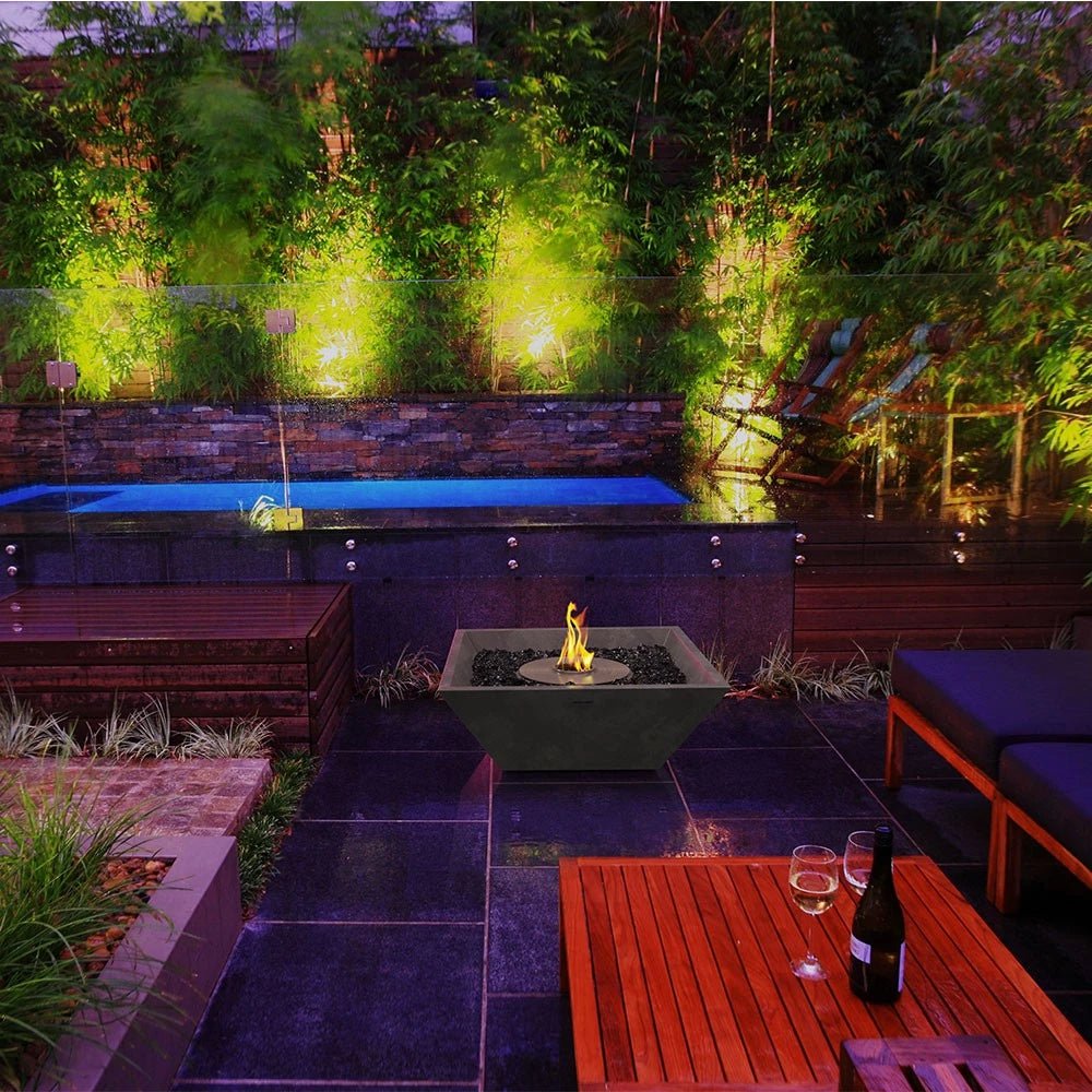 Fire de forme carrée. Le Nova 600 étant fabriqué en béton composite, la cheminée peut