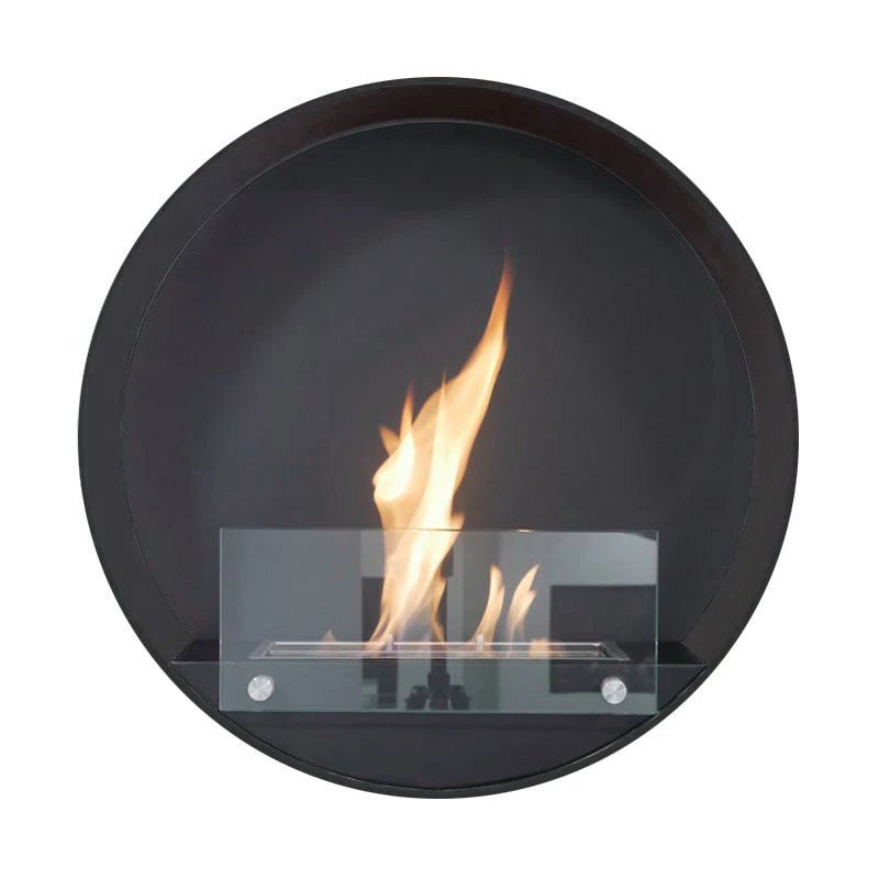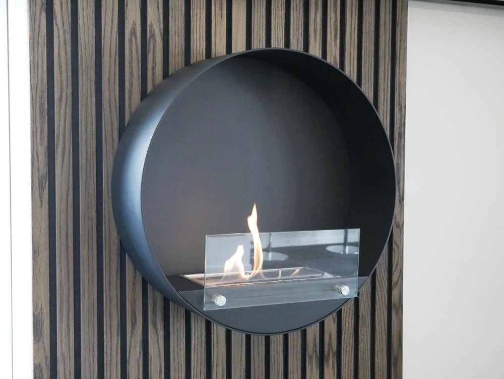 Cheminée bio ronde noire Delaware pour installation murale
