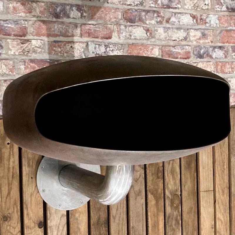 Cheminée UFO dans un design industriel unique du fabricant danois Hein & Haugaard. La cheminée est faite à la main, donc chaque modèle est unique.