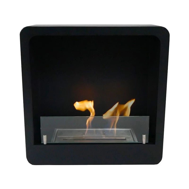 Cheminée carrée murale noire au bioéthanol