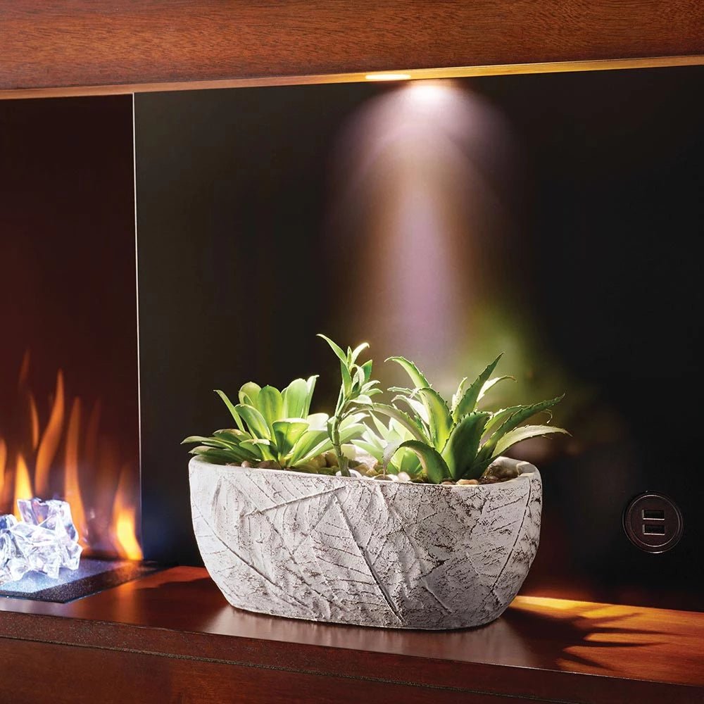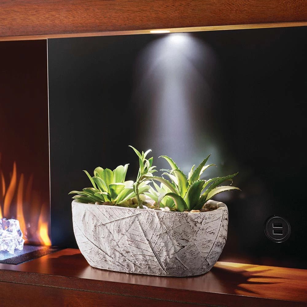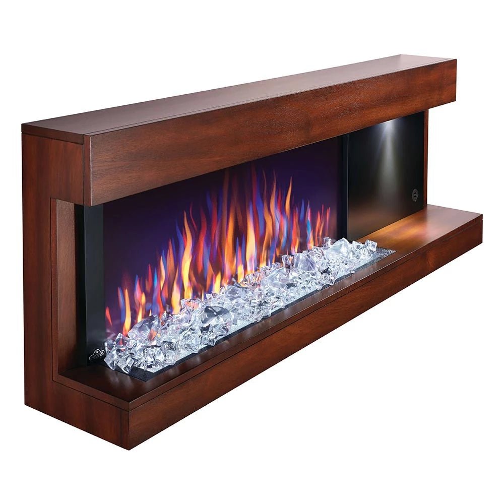 Stylus Steinfeld est une cheminée électrique murale de la marque Napoleon Premium Fire. Ce foyer offre le choix entre 4 couleurs de flammes différentes (jaune, orange, bleu et multicolore) qui peuvent être réglées sur 5 niveaux de luminosité. L’éclairage décoratif peut être choisi parmi 6 couleurs différentes.