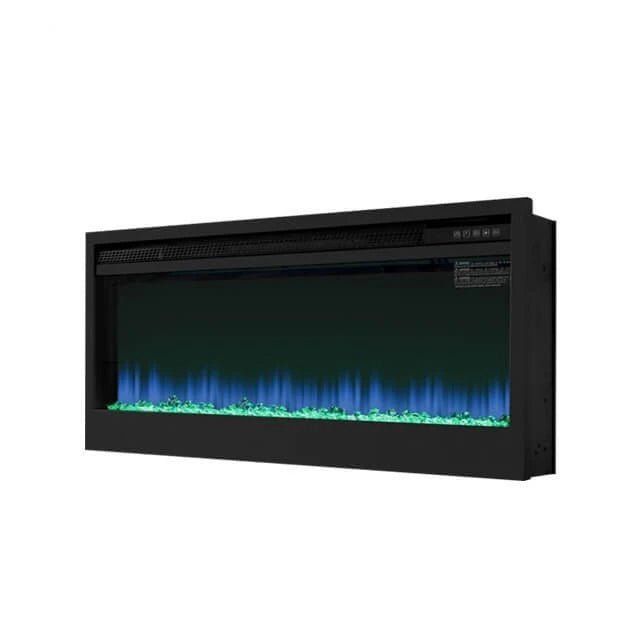 Belle cheminée électrique à accrocher ou à encastrer au mur avec effet chauffant. Les « cristaux » seront un bel ajout à la cheminée et peuvent être placés directement dans l’insert.