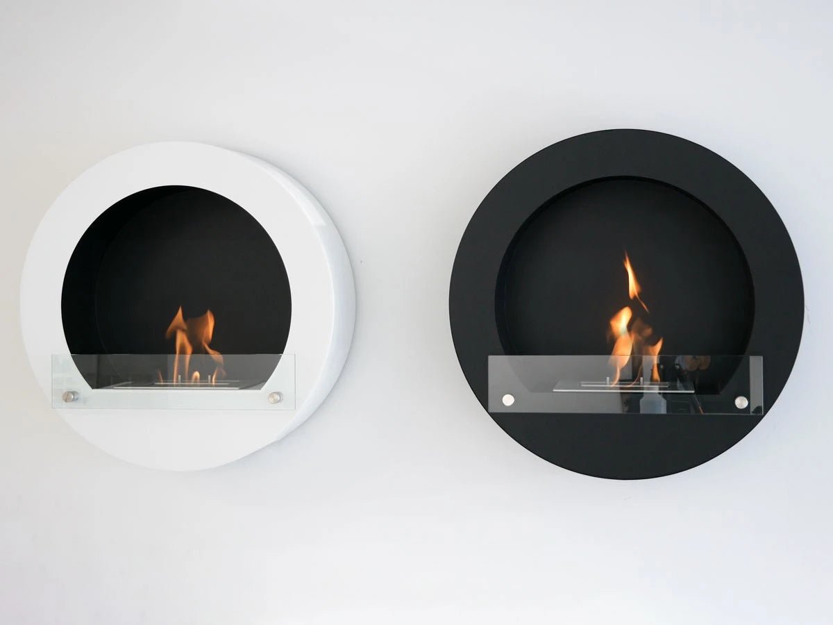 Cheminée au bioéthanol en noir avec une forme ronde