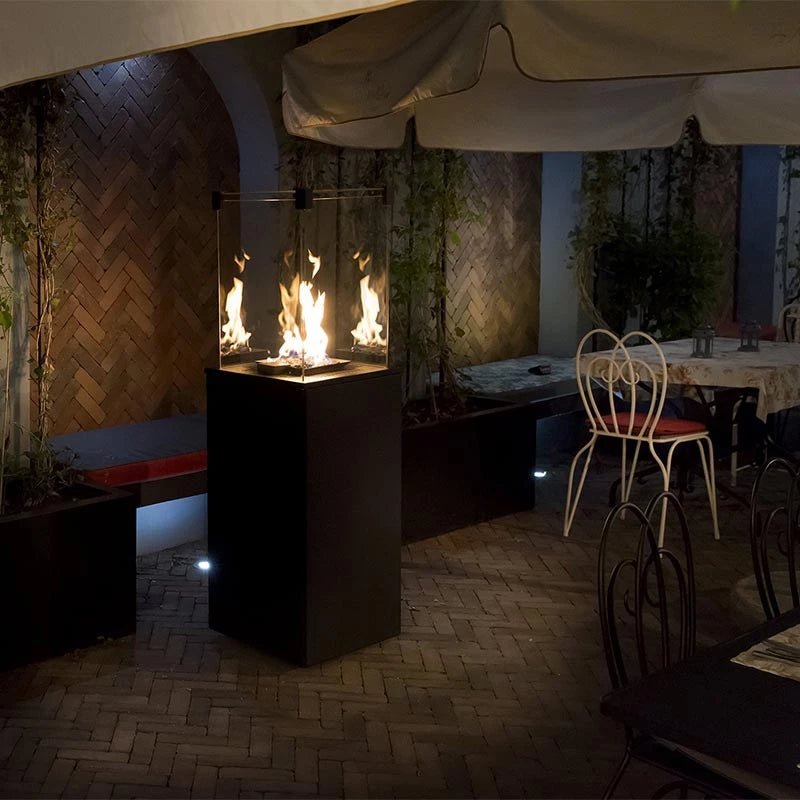 Cheminée à gaz de luxe pour la terrasse ou le restaurant. Contrôlez votre cheminée à gaz avec la télécommande.