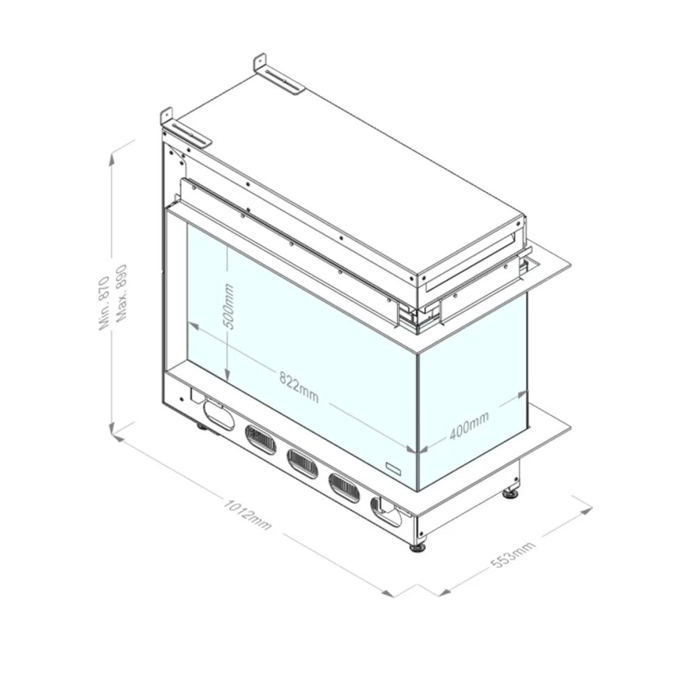 Conçue pour être installée dans un mur de séparation de pièce, cette cheminée présente des flammes visibles de trois côtés. Elle se raccorde à une alimentation en eau principale, éliminant le besoin de remplissages manuels et garantissant qu’elle soit toujours prête d’une simple pression sur un bouton.