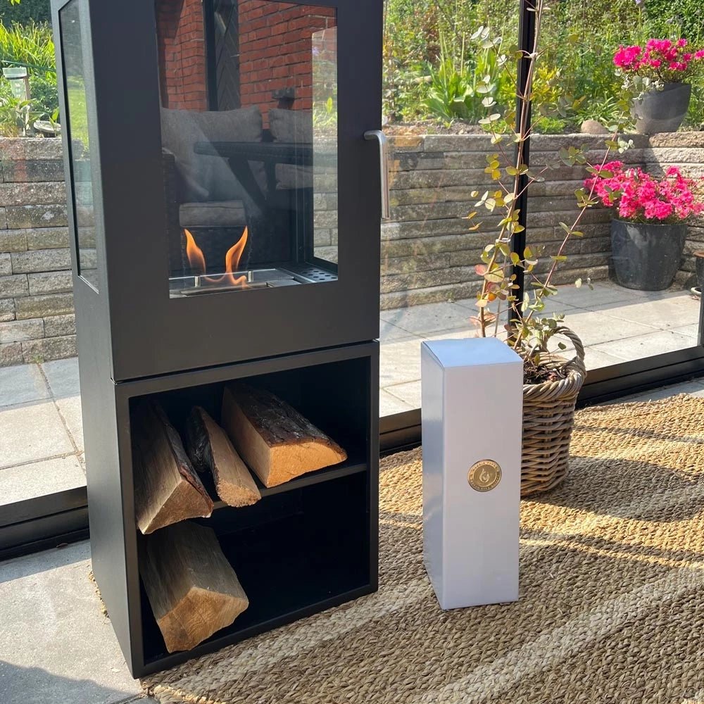 Superbe extincteur noir de 2 kg avec une finition élégante comprenant le logo Nordic Flame doré imprimé sur le devant du produit. Conçu pour s’intégrer parfaitement dans un décor intérieur moderne.