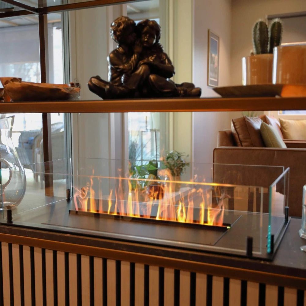 Cheminée minimaliste ouverte qui crée une flamme via de la