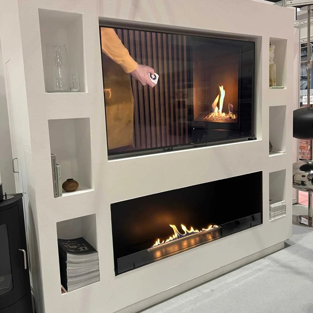 Ce modèle est un choix populaire pour une installation sous un téléviseur. Si vous installez le modèle sous un téléviseur, nous vous recommandons de consulter notre guide d’installation d’un téléviseur au-dessus de la cheminée bioéthanol pour garantir une installation sécurisée et optimale.