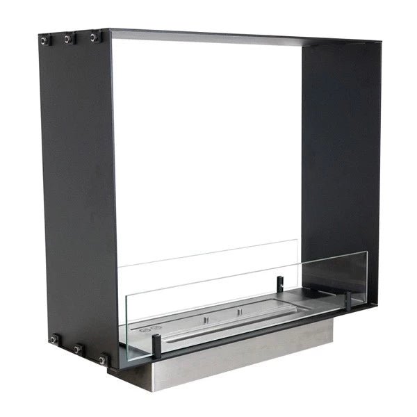 Il peut être un peu difficile d’obtenir un bord parfait autour de la cheminée lorsqu’elle est encastrée dans un mur existant. Nous avons donc réalisé un cadre extérieur qui se place à l’extérieur de la cheminée, pour masquer d’éventuelles imperfections. Notez cependant qu’il s’agit d’un achat supplémentaire et qu’il doit être activement sélectionné.