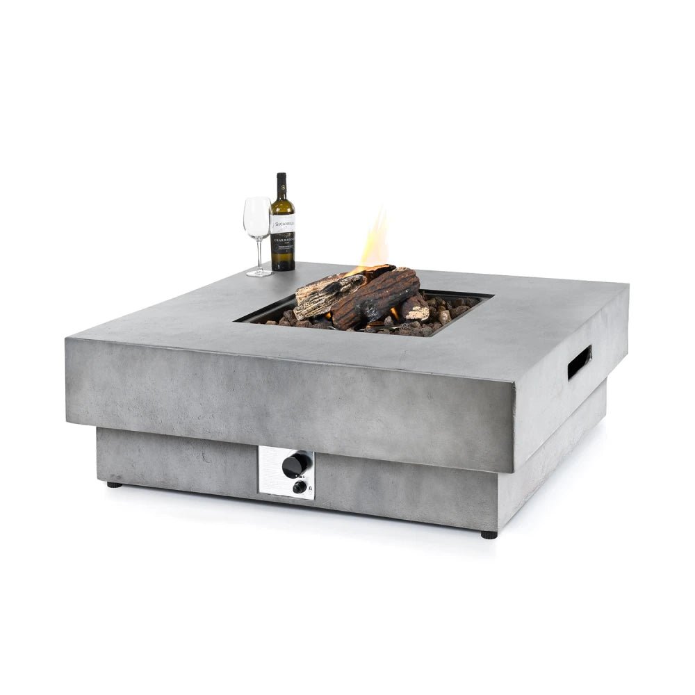 La Hestia de Happy Cocooning est fabriquée en matériau composite durable et a une hauteur de 36 cm, ce qui en fait un point central idéal dans un espace détente. Avec une longueur et une largeur de 107 cm, la table est carrée avec un brûleur à gaz au centre.