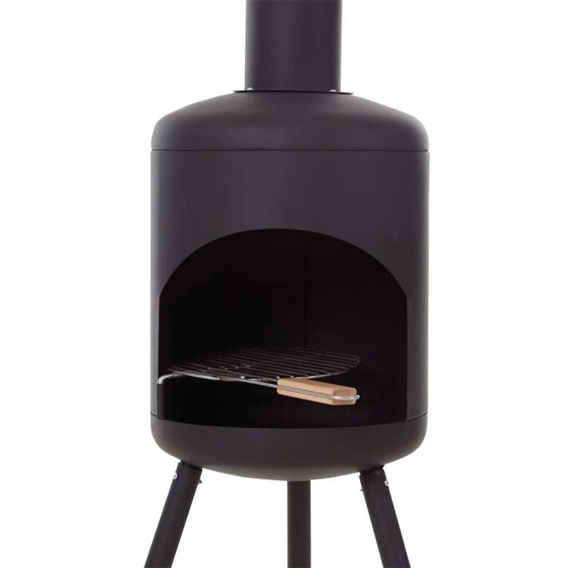 Grande cheminée de jardin Fuego en acier thermolaqué noir qui permet de faire un grand feu. Avec sa finition noire, cette cheminée s’adapte à tous les jardins et peut être utilisée toute l’année. Cette grande cheminée de jardin comprend un gril de 40 cm de diamètre, ce qui permet de préparer des plats directement sur le feu.