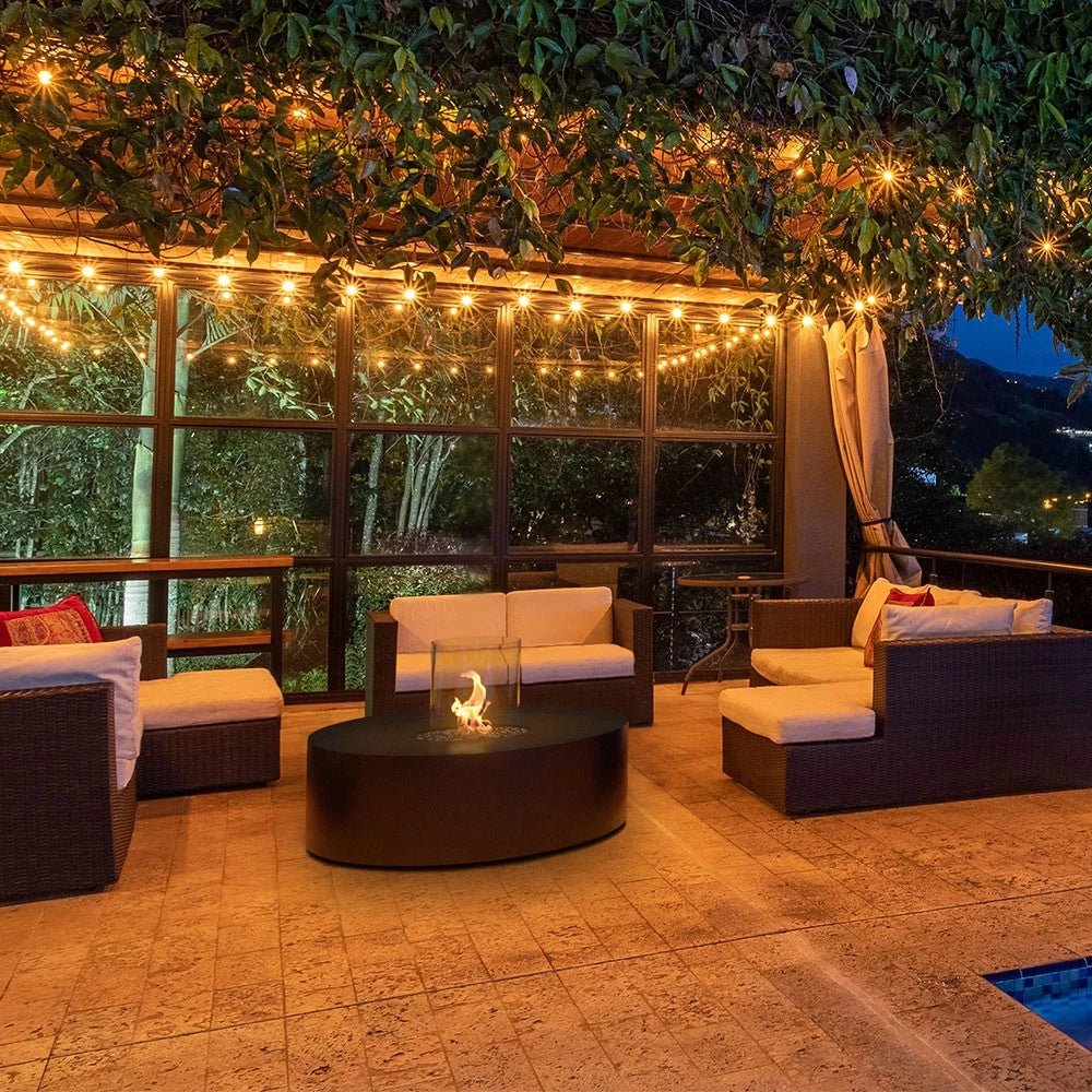 Le Galio Fire Pit Black est une grande cheminée à gaz ronde en acier durable.