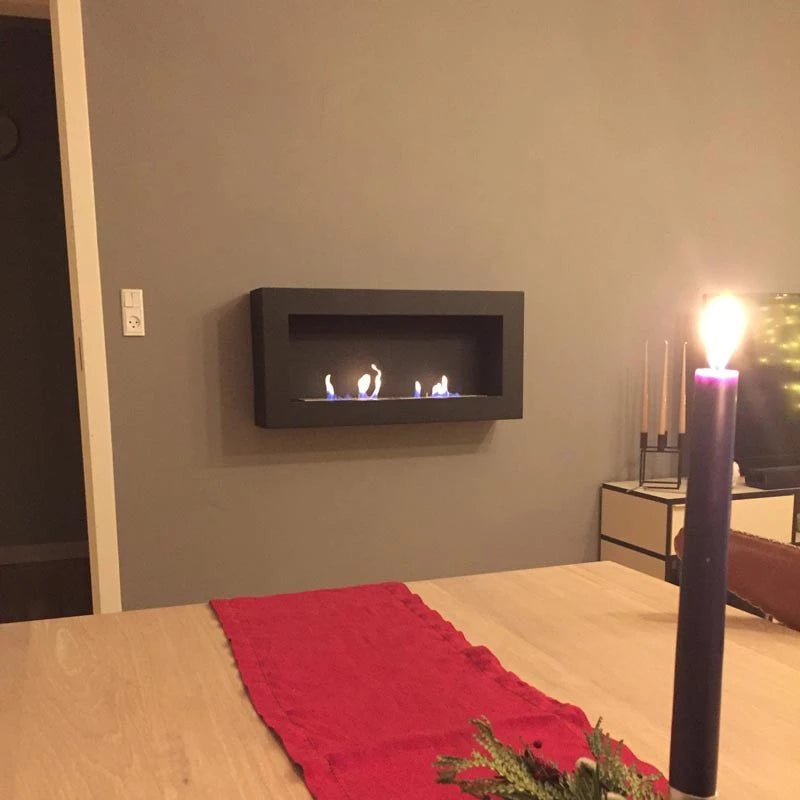 Grand cheminée bioéthanol murale en noir