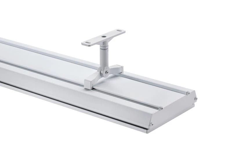 - Supports standard blancs pour le montage sur des plafonds ou des murs plats/inclinés.