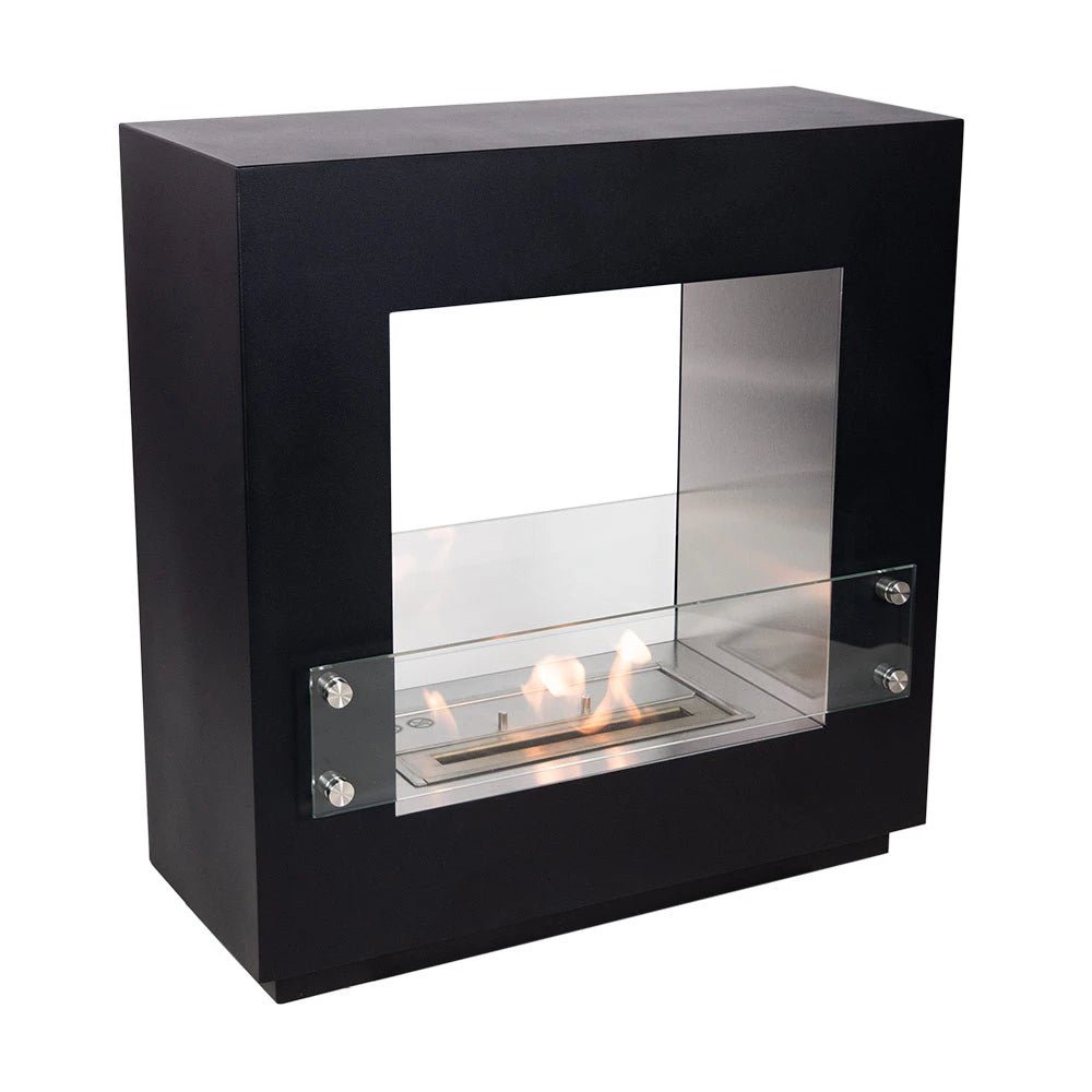 Cette cheminée au bioéthanol à poser offre une vue sur les flammes depuis les deux côtés opposés de la cheminée.