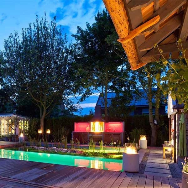 La base en béton de cette cheminée au bioéthanol crée un beau contrasteientre le gris assez froid et la chaleur des flammes. Cette cheminée estdéplaçable et peut s’adapter à de nombreux environnements.