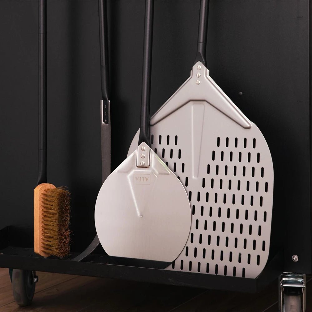 Fabriqué en acier inoxydable robuste, ce kit garantit une durabilité exceptionnelle et une résistance à la chaleur. Les poignées noires ergonomiques offrent une prise en main confortable, même pendant une utilisation prolongée. Ces pelles sont spécialement conçues pour vous permettre de manipuler vos pizzas facilement, du four à la table.