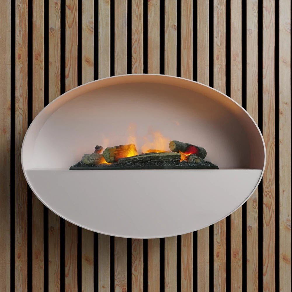 Le Kjos est une cheminée murale à vapeur d’eau de ScandiFlames Electric, qui crée une atmosphère de cheminée sans feu ni chaleur. Les effets de flamme sont créés à l’aide de vibrations ultrasoniques et de lumières LED, offrant ainsi une ambiance de cheminée unique.