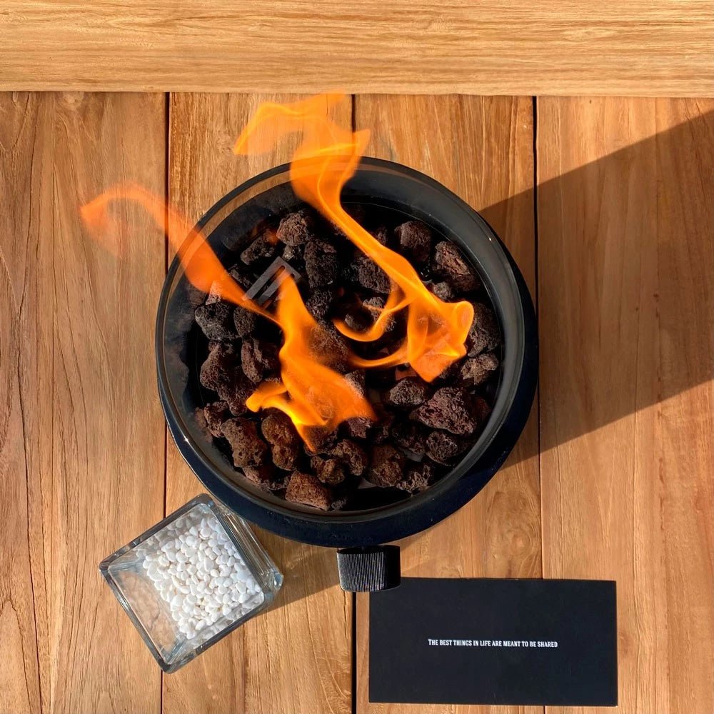 Loki est une petite cheminée d’extérieur d’une taille idéale pour une petite terrasse ou un balcon. La cheminée a une hauteur de 35 cm, ce qui permet de cacher la bouteille de gaz à l’intérieur.
