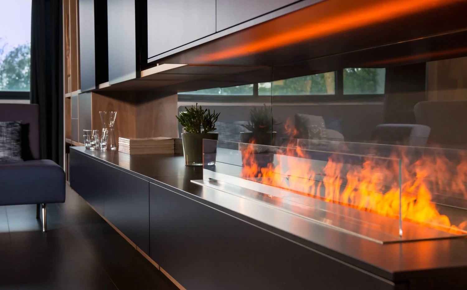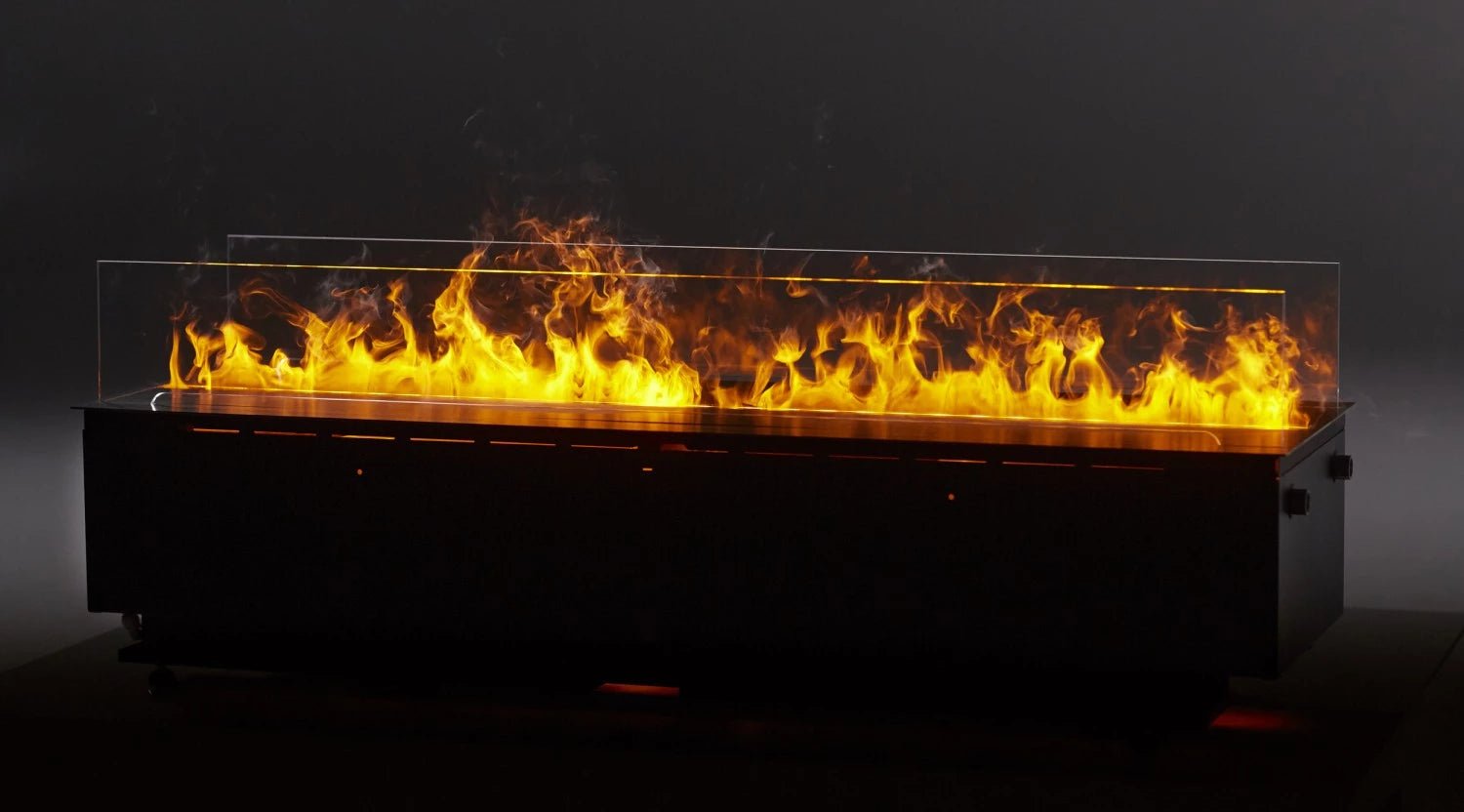Cheminée à vapeur magnifique et moderne à insérer dans un trou réalisé au préalable. Mistero nécessite seulement de l’eau et de l’électricité afin des produire ses flammes très réalistes et totalement sûres. De plus, l’intensité du « feu » peut être facilement réglée grâce à la télécommande inclue dans le produit.