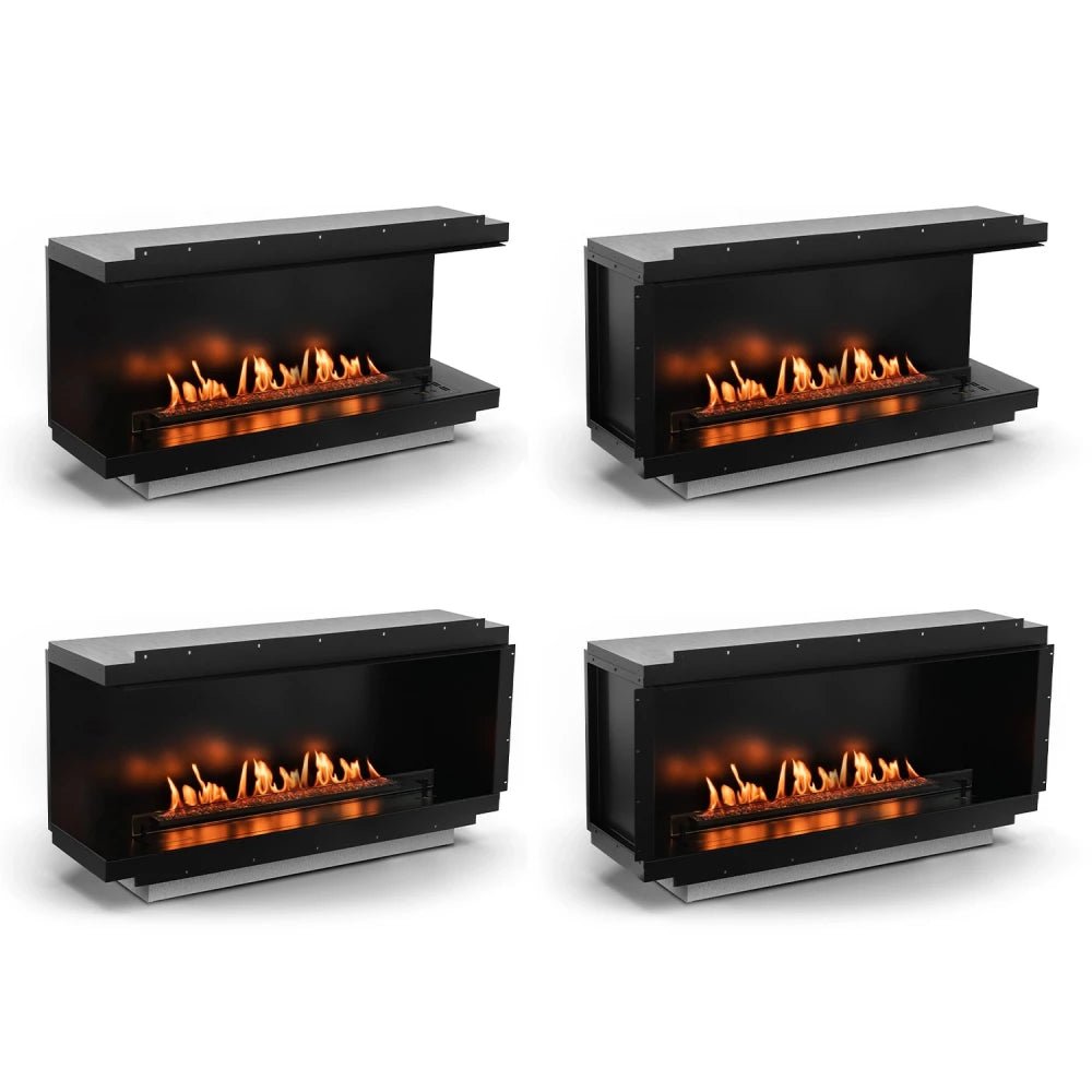 Cette option est possible en raison de 2 panneaux sur le côté détachables et pouvant ainsi permettre de changer le nombre de côtés de la cheminée, comme suit :