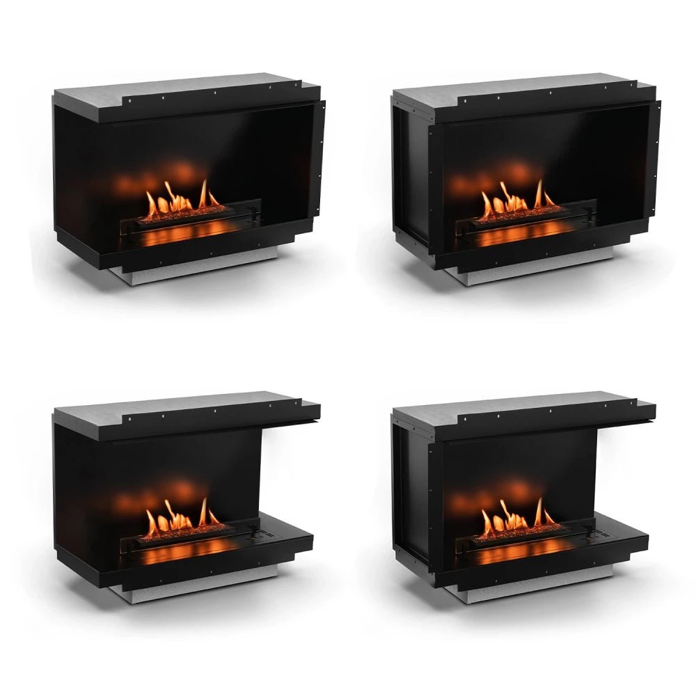 Cette option est possible en raison de 2 panneaux sur le côté détachables et pouvant ainsi permettre de changer le nombre de côtés de la cheminée, comme suit :