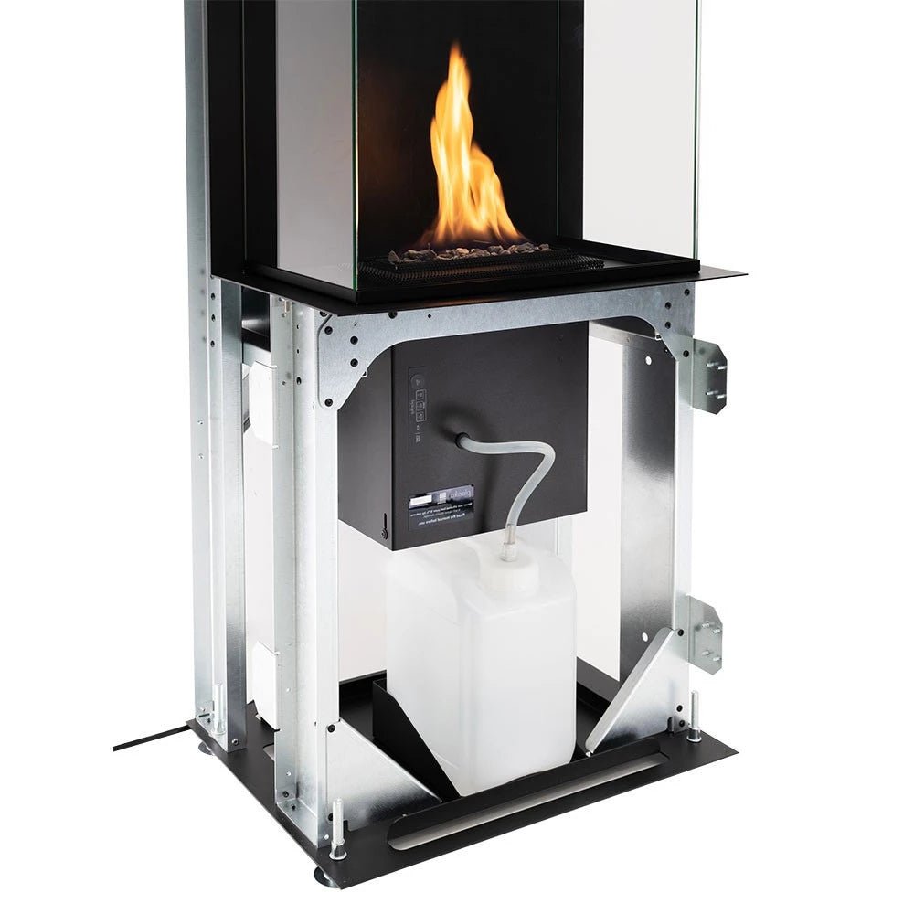A l’intérieur de la cheminée, vous retrouverez un espace consacré au réservoir de bioéthanol d’une capacité de 5 litres, impliquant une autonomie allant jusqu’à 33 heures par remplissage.