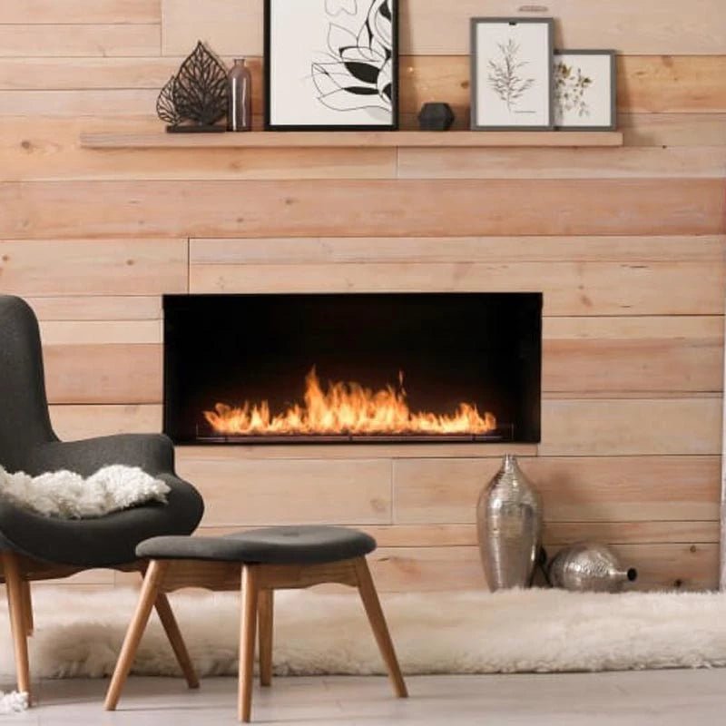 Si vous installez le foyer dans un mur combustible, vous devez isoler entre le foyer et le mur. Pour cela, nous recommandons des panneaux d’isolation thermique tels que. Les panneaux coupe-feu Skamotec, les panneaux Fermacell ou les enduits coupe-feu. N’oubliez pas non plus d’alimenter la cheminée en électricité, car toutes les cheminées automatiques doivent être raccordées au réseau.