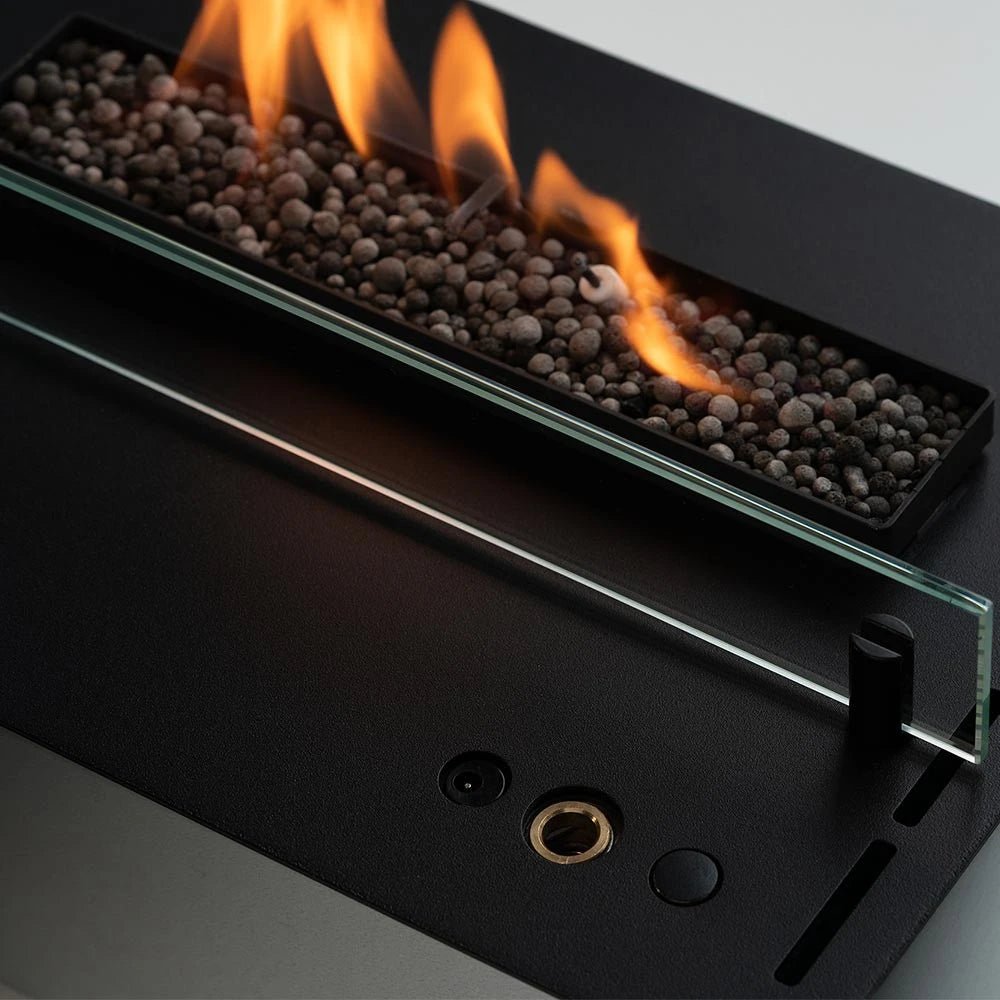 Le Senso Burner est un brûleur automatique, ce qui signifie que vous avez la possibilité de contrôler les flammes du foyer à l’aide de la télécommande fournie ou du panneau de commande intégré au brûleur.