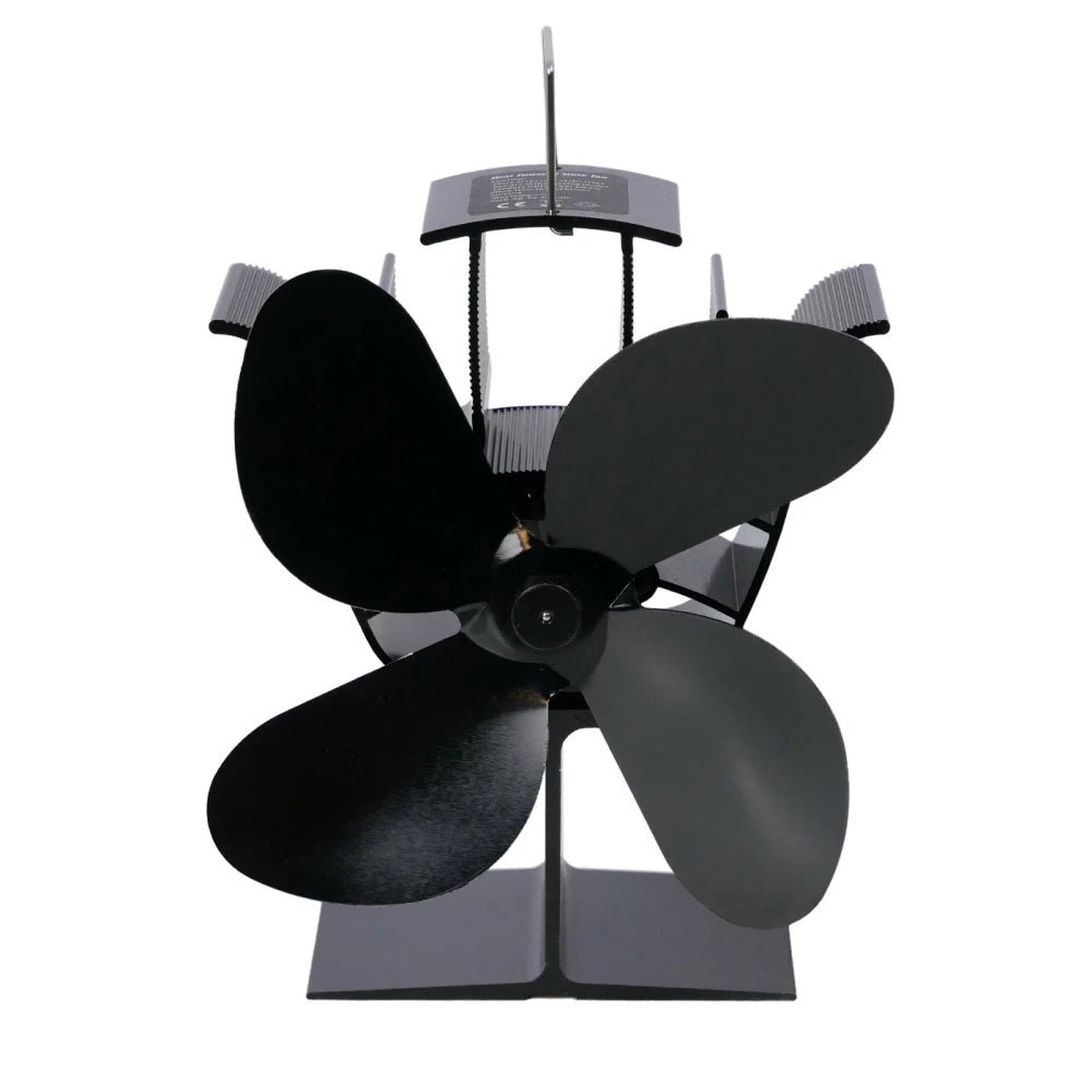 Ventilateur de Poêle à Chaleur Noire – 4 Lames (Design Compact)