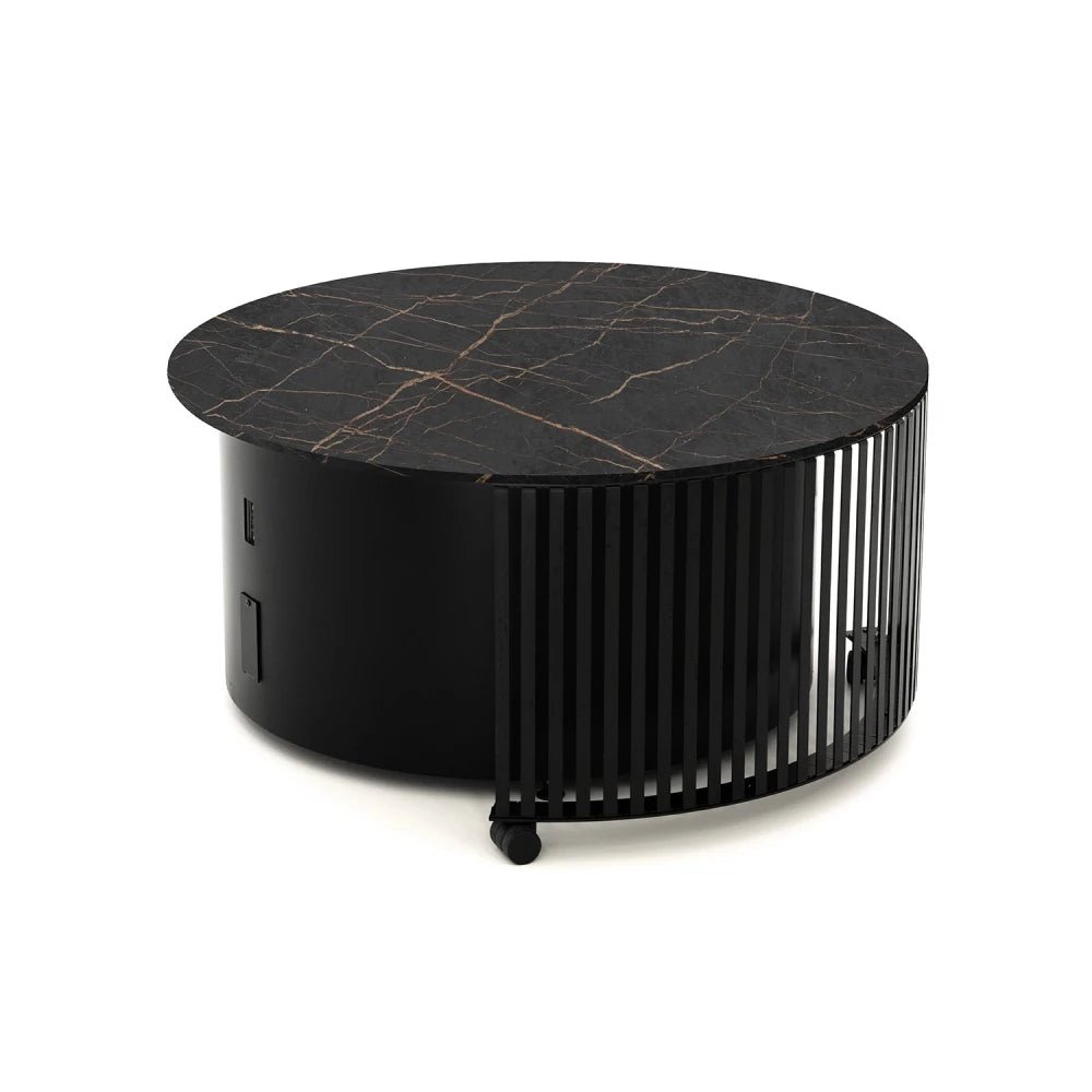 La table à feu Pivot est ronde et lorsqu’elle est repliée, elle fonctionne simplement comme une table de salon ordinaire. Mais lorsqu’elle est dépliée, elle s’ouvre et devient une belle cheminée à gaz de terrasse avec une table assortie.